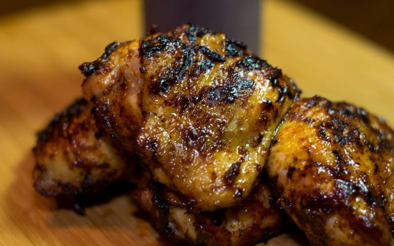 Using indirect heat is simple – in a charcoal grill you pile the coals on one side of the grill and place the chicken on the other side. You can do the same thing on most gas grills by lighting a few burners and placing the chicken on the ones that are off. The reason indirect heat is important is you want to cook the chicken slowly, so it cooks evenly all the way through without losing moisture. This is also why you should use bone-in and skin-on chicken, both of which hold in moisture and add flavor during the cooking process.